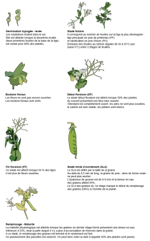 Correspondances entre les stades repères du pois et les codes BBCH