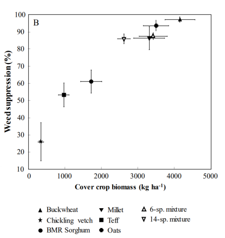 Smith et al. 2020. Are cover crop mixtures better at suppressing weeds than cover crop monocultures? Weed Science, 68: 186–194.