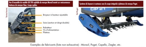 Elles sont spécifiques à la récolte du tournesol et peuvent être équipées d'un broyeur de cannes. Ce type d'équipement est en progression en France.
