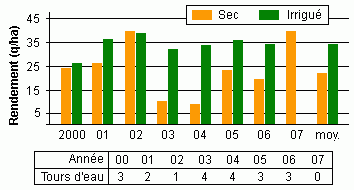 Irrigation CREAS de 2000 à 2007 - Moyenne 2000-2006 pour 1 à 4 tours d'eau, 0 en 2007