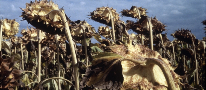 Les feuilles sont complètement desséchées, le capitule est brun noir et les tiges brunes. Les pertes seront importantes à cause de la verse (perte de capitules) et de l’égrenage par le vent, les oiseaux ou les maladies (botrytis).