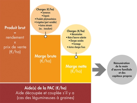 La marge exprimée en €/ha est l’indicateur particulièrement adapté pour évaluer la rentabilité économique en grandes cultures. Les marges les plus couramment utilisées sont la marge brute et la marge nette.