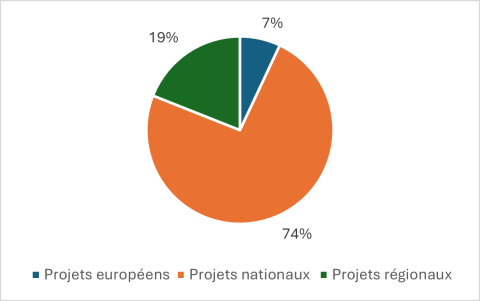 Une centaine de projets sont en cours en 2025, avec une répartition illustrée sur la figure ci-contre.