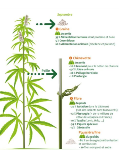La plante de chanvre peut, en effet, être utilisée dans de nombreux débouchés :