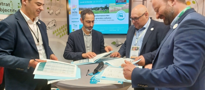 Terres Inovia, Arvalis, l’ITB et l’Acta ont confirmé leur volonté de poursuivre ensemble le développement et le déploiement de l’outil SYSTERRE. Ils ont signé, au Salon International de l’Agriculture le 24 février, sur le stand de l'Acta, la nouvelle convention signant la poursuite du déploiement de cet outil, qui permet l’évaluation de la multiperformance des systèmes de production en grandes cultures.