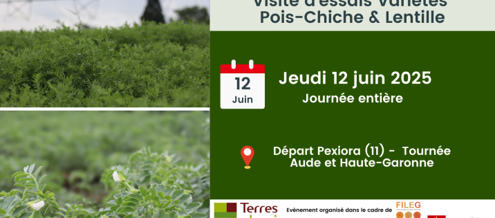 - 11h15-12h00 : Visite des essais variétés Lentille et Pois chiche AB mis en place par le GIP LIA, Auriac/Vendinelle 31460