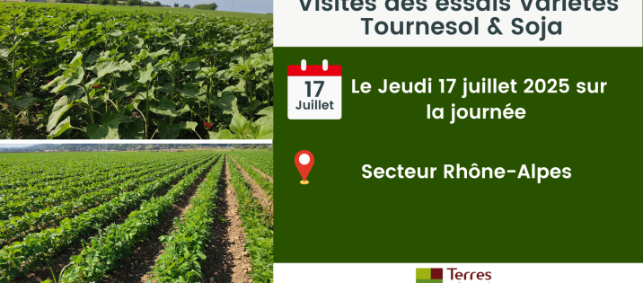 - 9h35 – 10h10: Visite de l’essai variétés Soja précoce 0, Terres Inovia – Saint-Paul-lès-Romans (26)