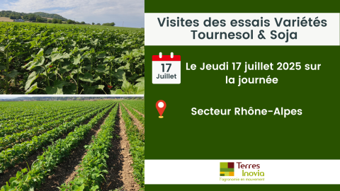 - 16h40 - 17h30 : Visite de l’essai variétés soja, partenariat avec UCAPA– Pont de vaux (01)