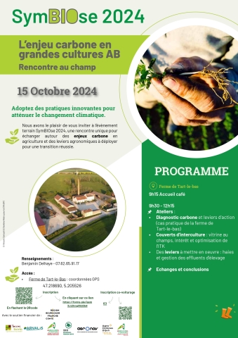 Nous avons le plaisir de vous inviter à l’évènement terrain SymBIOse 2024, une rencontre unique pour échanger autour des enjeux carbone en agriculture et des leviers agronomiques à déployer pour une transition réussie.