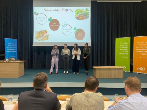 Avant de laisser la place aux cinq finalistes 2024, Charlotte Blin, co-fondatrice de Mme Beans et gagnante de la 2ème édition du Cap Protéines Challenge, est venue présenter l’avancement de son projet de création d’aides culinaires à base de légumes secs à destination de la restauration collective. Elle a pu ainsi témoigner de son expérience d’accompagnement à la suite du concours grâce à Euralimentaire. La start-up est d’ailleurs hébergée par l’incubateur de l’ESA.
