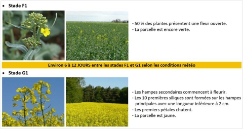 Il est important d'observer les parcelles du stade D1 au stade F1 :