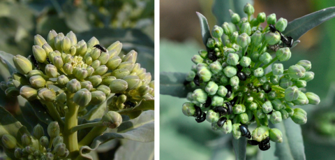 - Au stade D1, les méligèthes sont plus difficiles à repérer, il est donc nécessaire d'examiner attentivement les boutons encore cachés par les feuilles.