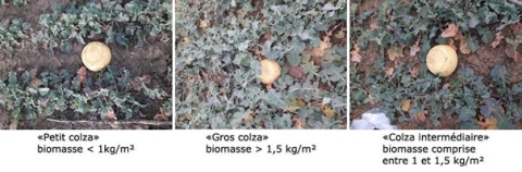 Il s’agit de prélever et peser la biomasse aérienne de colza sur 1 m² dans le cas d’un semi au semoir céréales ou bien l’équivalent pour les semis au monograine (1.67 mètre linéaire pour un écartement à 60 cm ou 1.25 mètre linéaire pour un écartement à 80 cm). Idéalement cette mesure est à réaliser deux fois : en entrée hiver (début décembre) puis en sortie hiver (fin janvier), de façon à prendre en compte d’éventuelles perte de feuilles au cours de l’hiver. Si la mesure de début hiver est optionnelle dans notre région, celle de sortie hiver est incontournable.