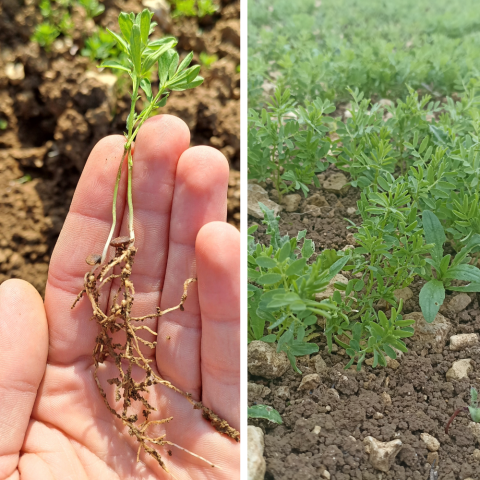 En Poitou-Charentes, les lentilles semées entre fin février et mi-mars sont au stade 3 à 6 feuilles. Les enracinements sont bons et les premières nodosités sont déjà formées pour la plupart des parcelles.