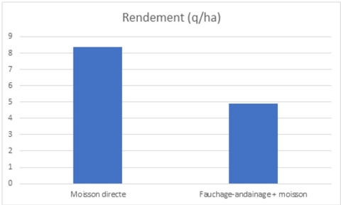 Dans l’hypothèse d’une récolte en conditions très sèches, en dessous de 15 % de teneur en eau, le manque d’humidité peut entrainer de la casse de graines. Ce facteur est non négligeable dans la capacité germinative des graines pour les contrats de semences et les utilisateurs de graines de fermes. C’est également rédhibitoire pour l’alimentation humaine si plus de 10 % de graines cassées sont présentes.