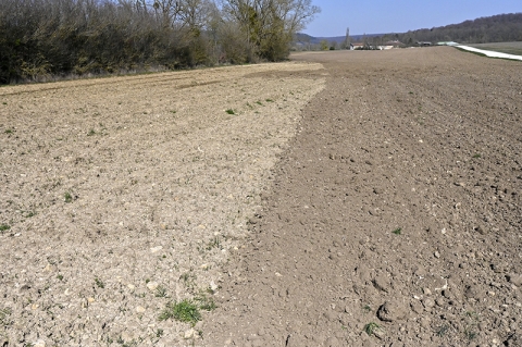 Un travail profond (15-20 cm) peut être réalisé dès que les conditions de ressuyage du sol le permettront (labour ou outil à dents). Par la suite, 1 à 2 interventions seront nécessaires pour affiner le lit de semence, le niveler et le réchauffer. Veiller à ne pas faire trop de terre fine en surface, ce qui augmente le risque de battance. Dans ces conditions, les outils trop énergiques (type herse rotative) sont à proscrire. Privilégiez les outils à dents (type vibro ou herse lourde) qui conserveront des mottes en surface.