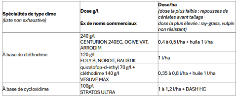La stratégie antigraminée reposera essentiellement sur la propyzamide (KERB FLO), ainsi que quelques antigraminées foliaires de la famille des FOP.