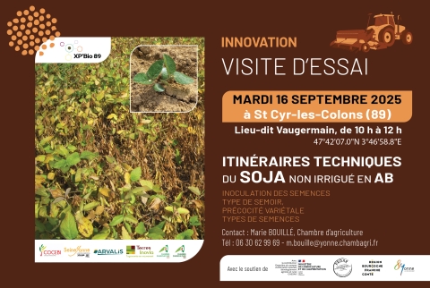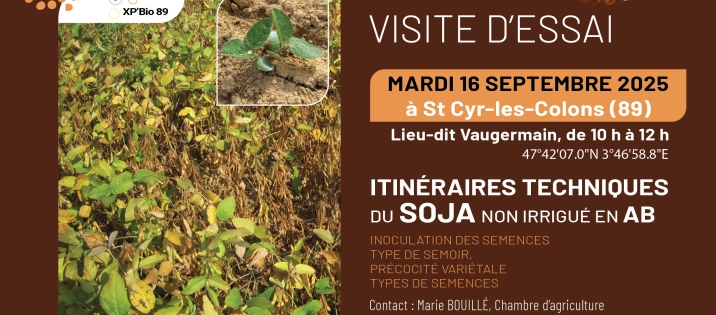 Dans le cadre du projet XP Bio, nous vous proposons une visite d’essai afin d’échanger autour de la culture du soja en agriculture biologique, et plus particulièrement sur les thématiques suivantes :
